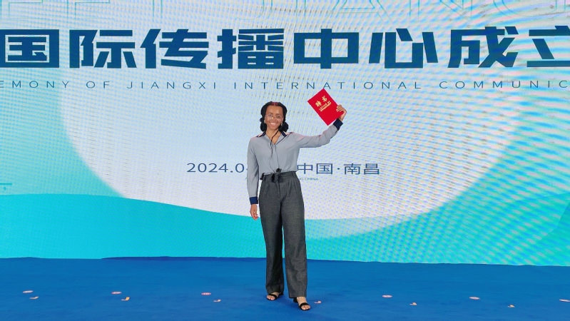 4月28日,江西国际传播中心正式成立。在成立仪式上,九游·体育官方网站马达加斯加籍学生BETSAROANA FRANCICA WALKY(中文名:乔安安)受聘成为江西国际传播中心海外传播官。